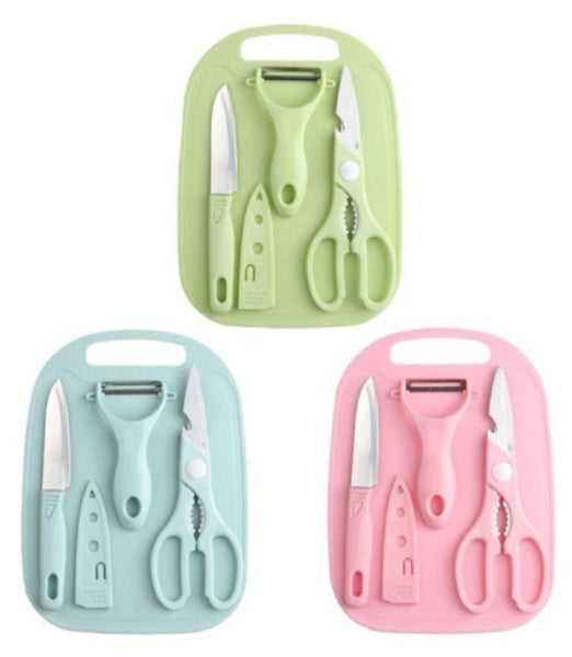 SET 4 EN 1 TABLA DE PICAR+CUCHILLO+PELADOR+TIJERA